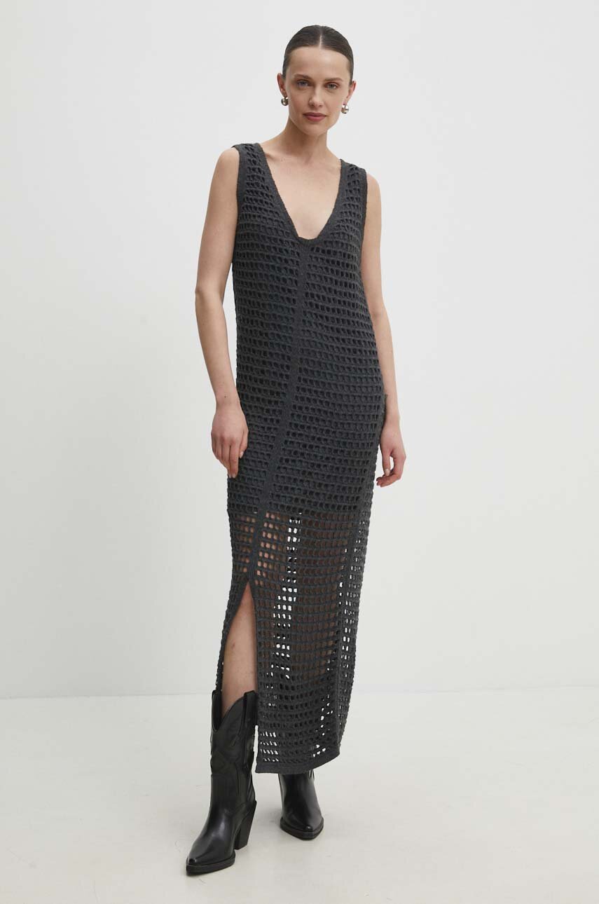 Acum, să discutăm despre rochia maxi de culoare gri. Această piesă vestimentară este o alegere ideală pentru diverse ocazii, oferind atât confort, cât și un aspect elegant.