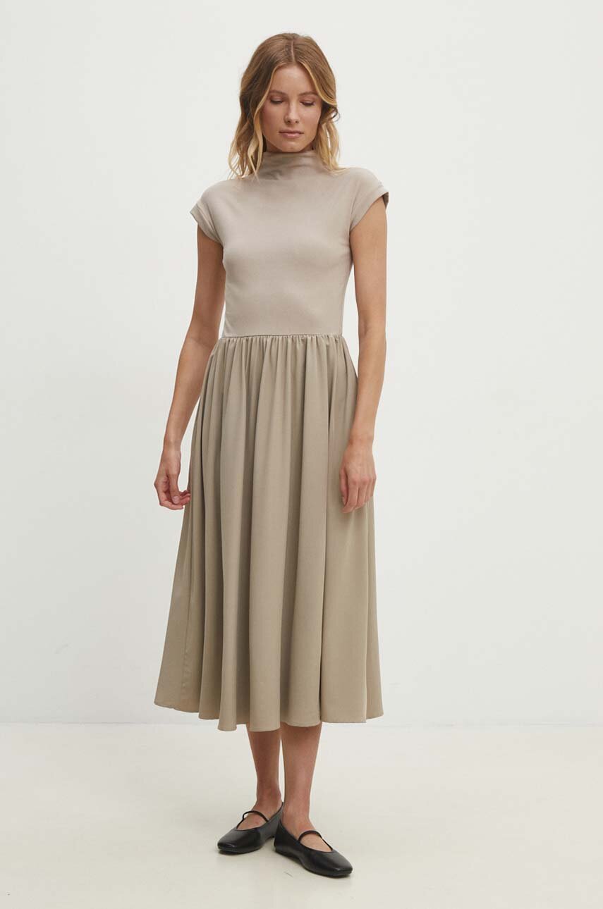 Medicine rochie culoarea bej, midi, evazati