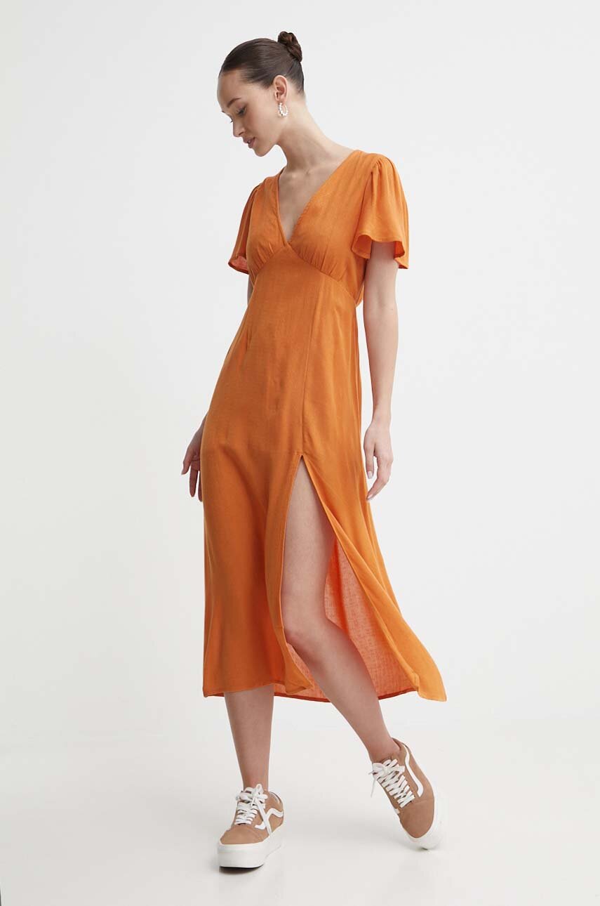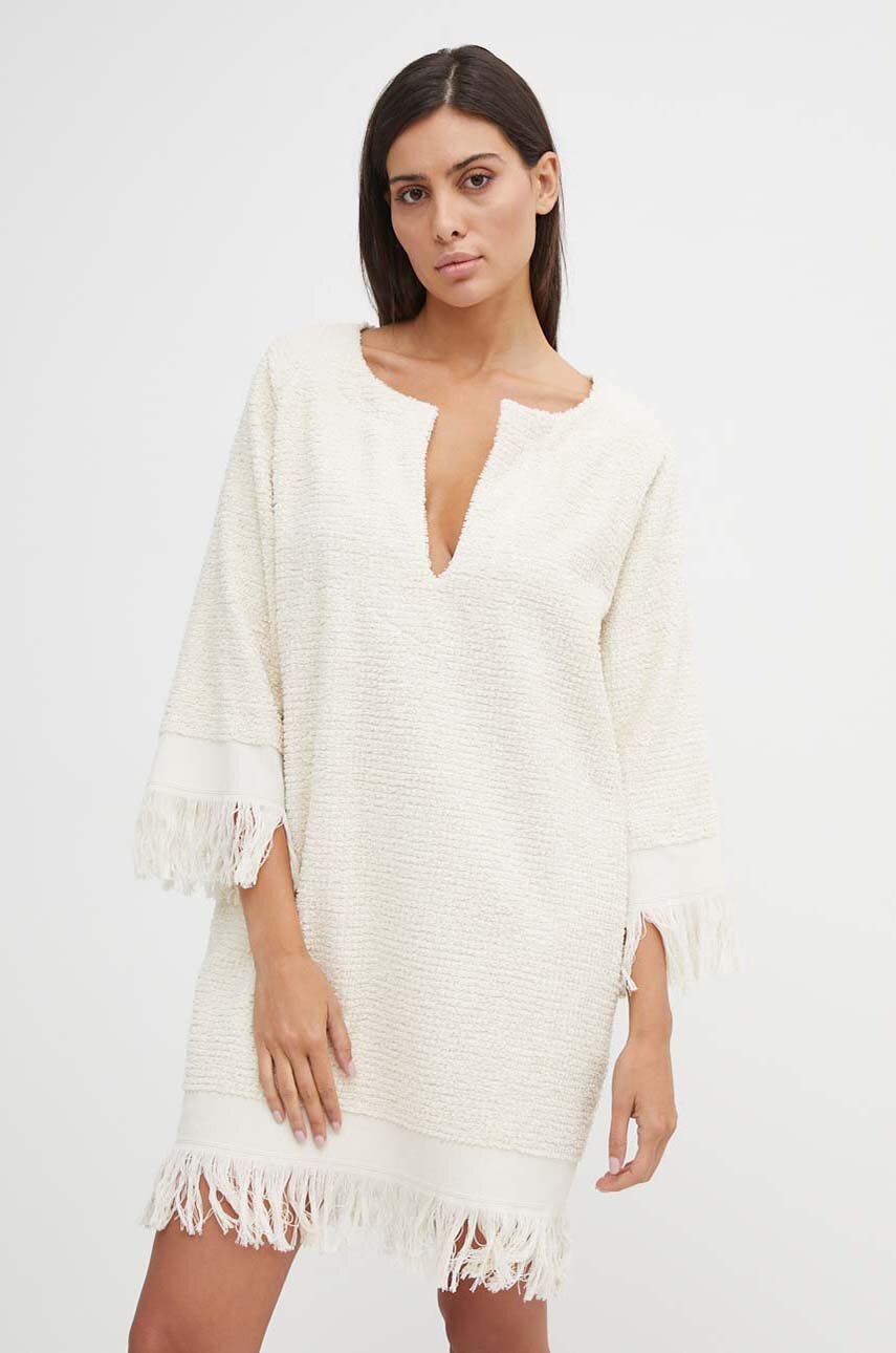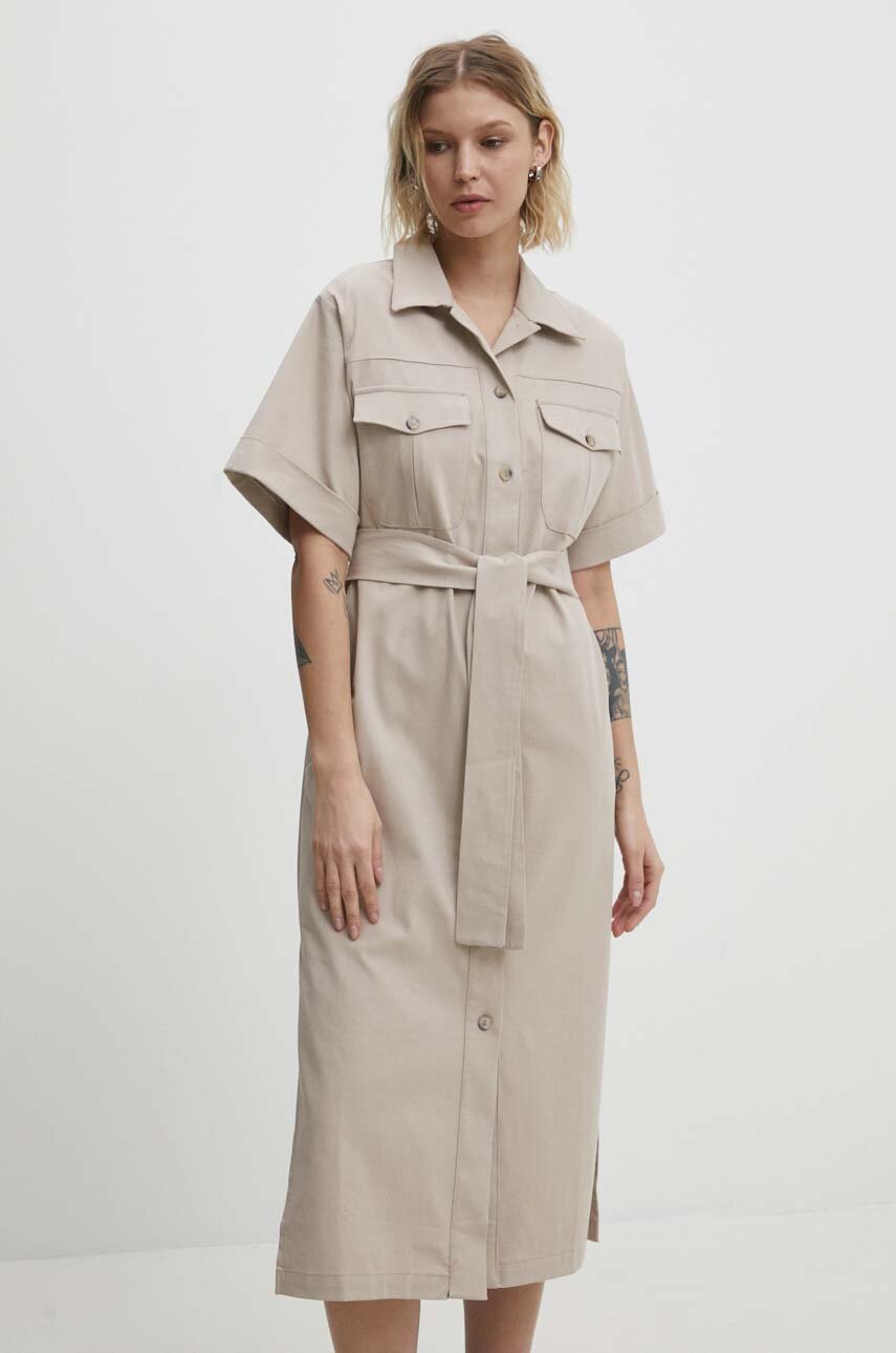 Drykorn rochie din bumbac ELSANNE culoarea bej, maxi, mulata, 523030 60567