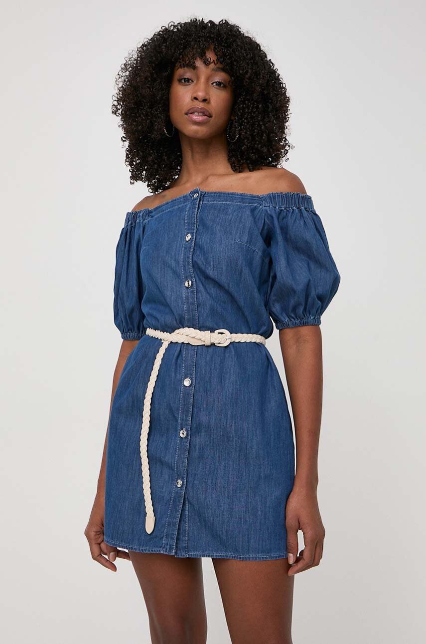 Tommy Jeans rochie culoarea verde, mini, mulată DW0DW17406