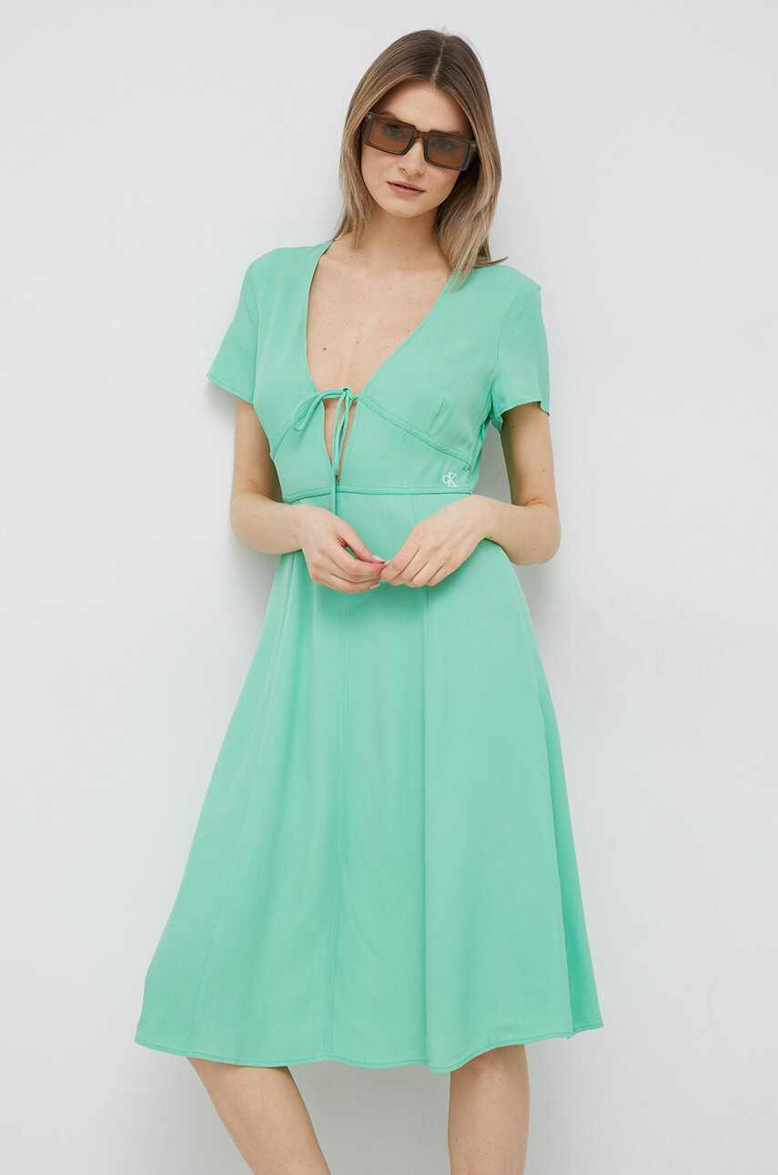 Marciano Guess rochie de matase culoarea verde, maxi, drept