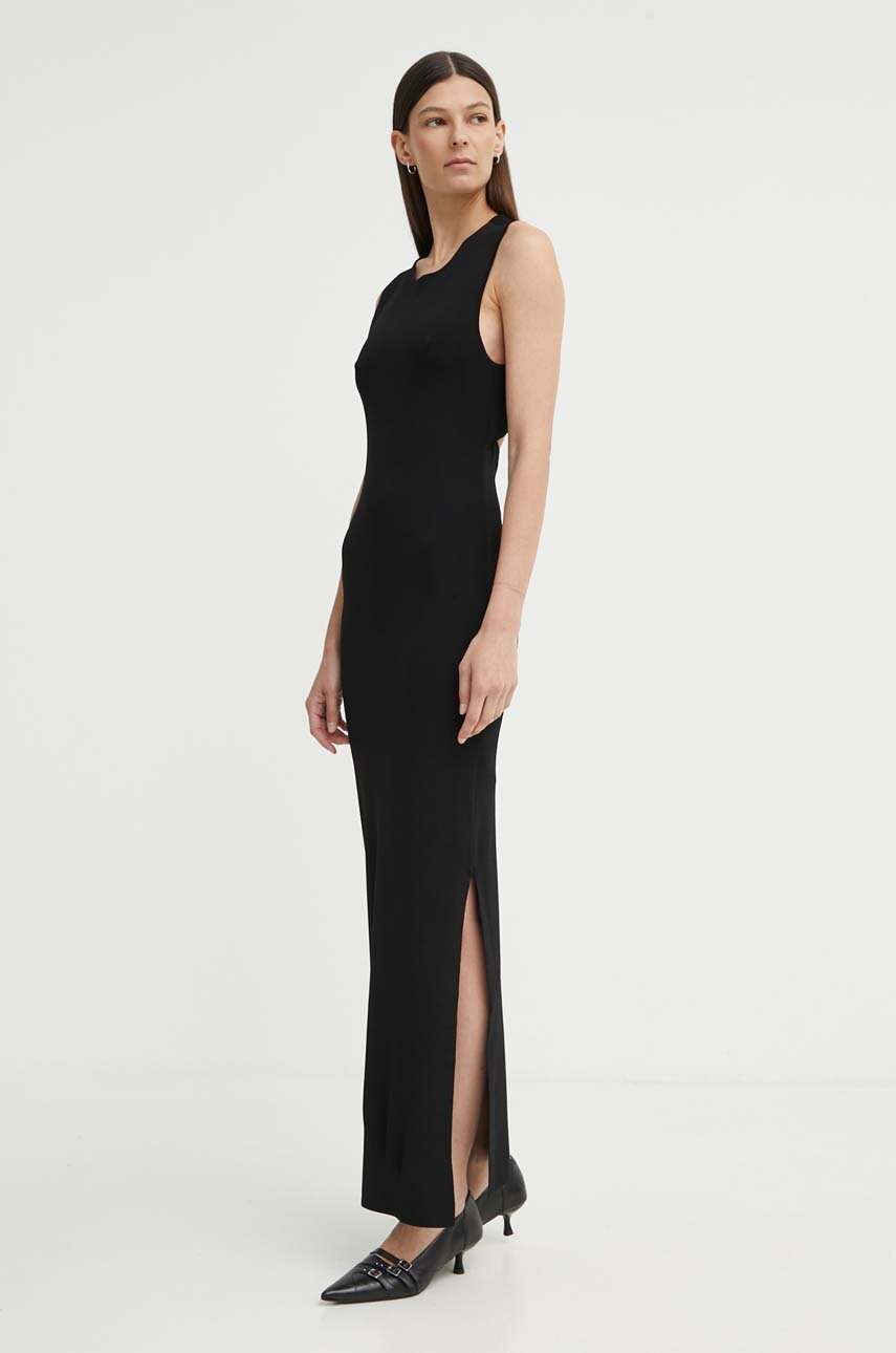 Gestuz rochie culoarea negru, midi, mulata, 10909074