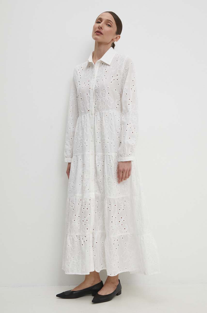 Answear Lab rochie din bumbac culoarea alb, maxi, evazati