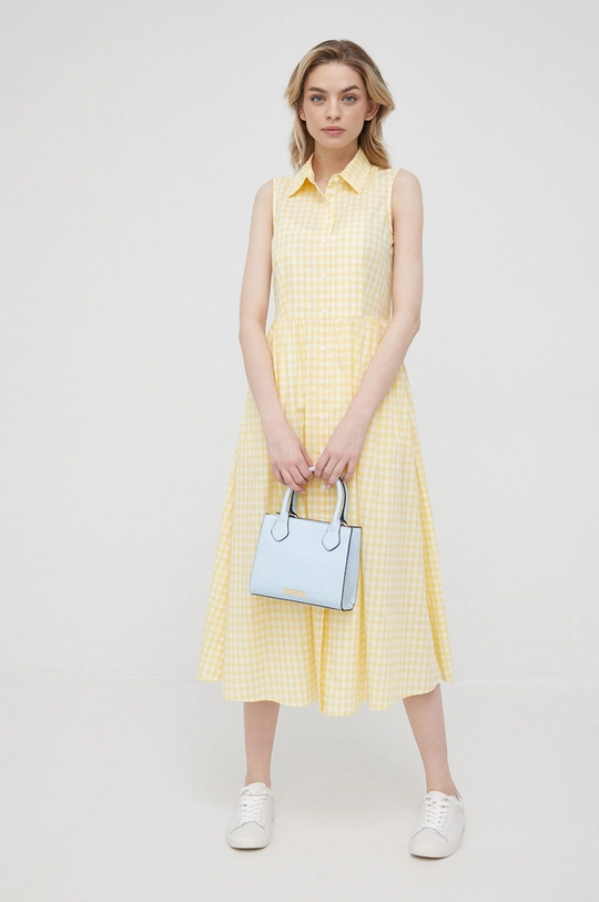 Pennyblack rochie din bumbac culoarea galben, midi, evazati