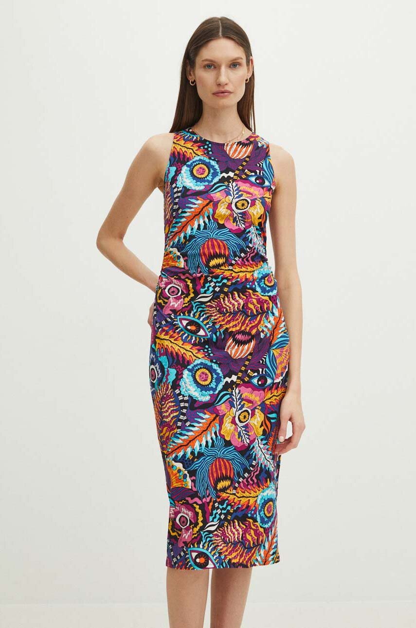 Termenul „midi” se referă, de obicei, la lungimea unei rochii sau fuste care se oprește undeva între genunchi și glezne. Acesta este un stil versatil, care poate fi purtat atât la ocazii mai formale, cât și în viața de zi cu zi.